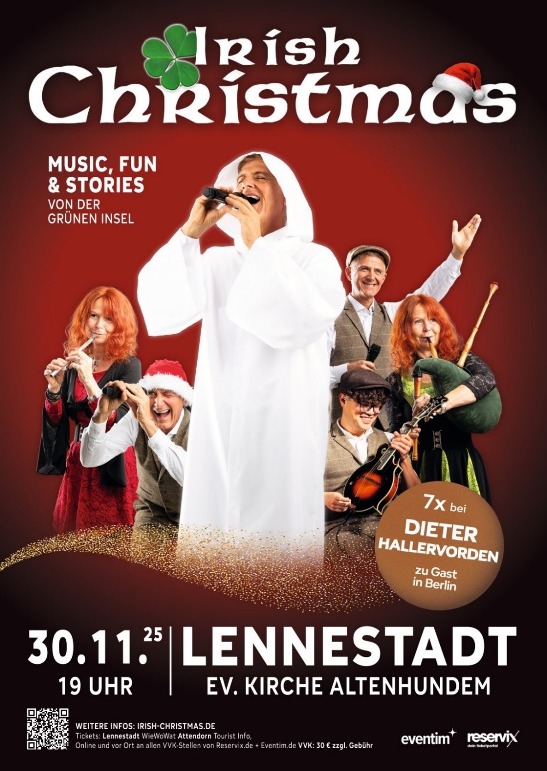 Tickets: Lennestadt WieWoWat Attendorn Tourist Info, Online und vor Ort an allen VVK-Stellen von Reservix.de + Eventim.de, VVK: 30 € zzgl. Gebühr, Videos und weitere Infos unter www.irish-christmas.de