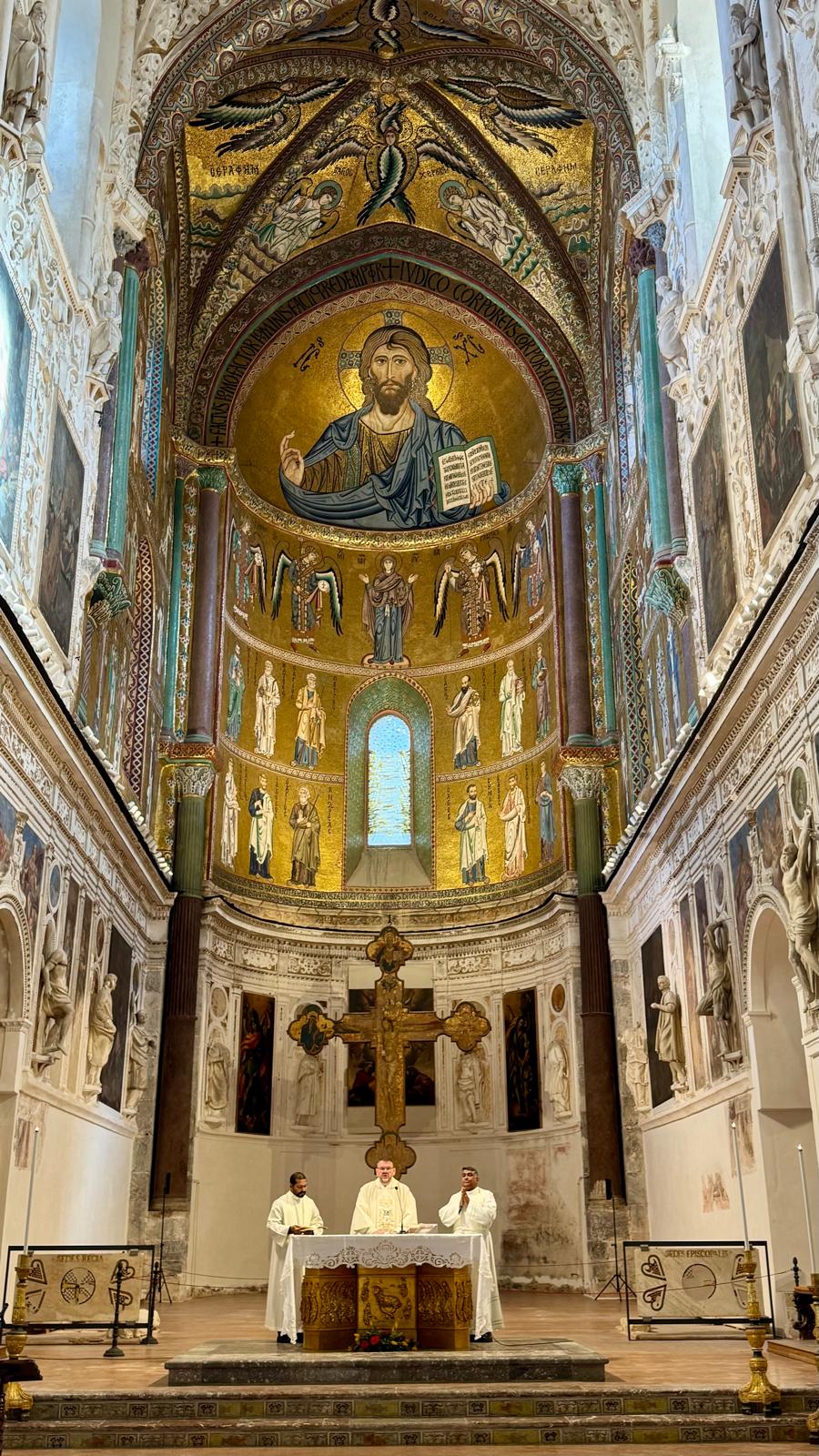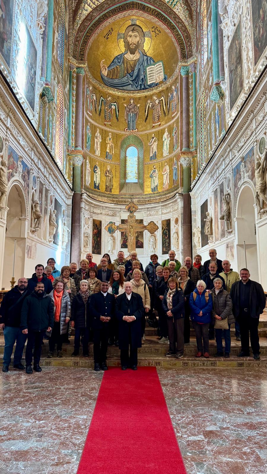 Hier wurde die Gruppe besonders herzlich von Bischof Giuseppe Marcante im Dom begrüßt. Eine langjährige Freundschaft verbindet ihn mit Vikar Jai: Als Marcante noch Pfarrer in Rom war, wirkte Vikar Jai als Diakon und Kaplan bei ihm. Die Begegnung in Cefalù war von großer Herzlichkeit geprägt, und Bischof Marcante lobte in sehr emotionalen Worten die heilige Agatha, mit der er seit Kindertagen verbunden ist – er selbst stammt aus der Dompfarrei in Catania. Diese Begegnung hinterließ bei allen Teilnehmern einen bleibenden Eindruck und vertiefte die spirituelle Dimension der Reise.