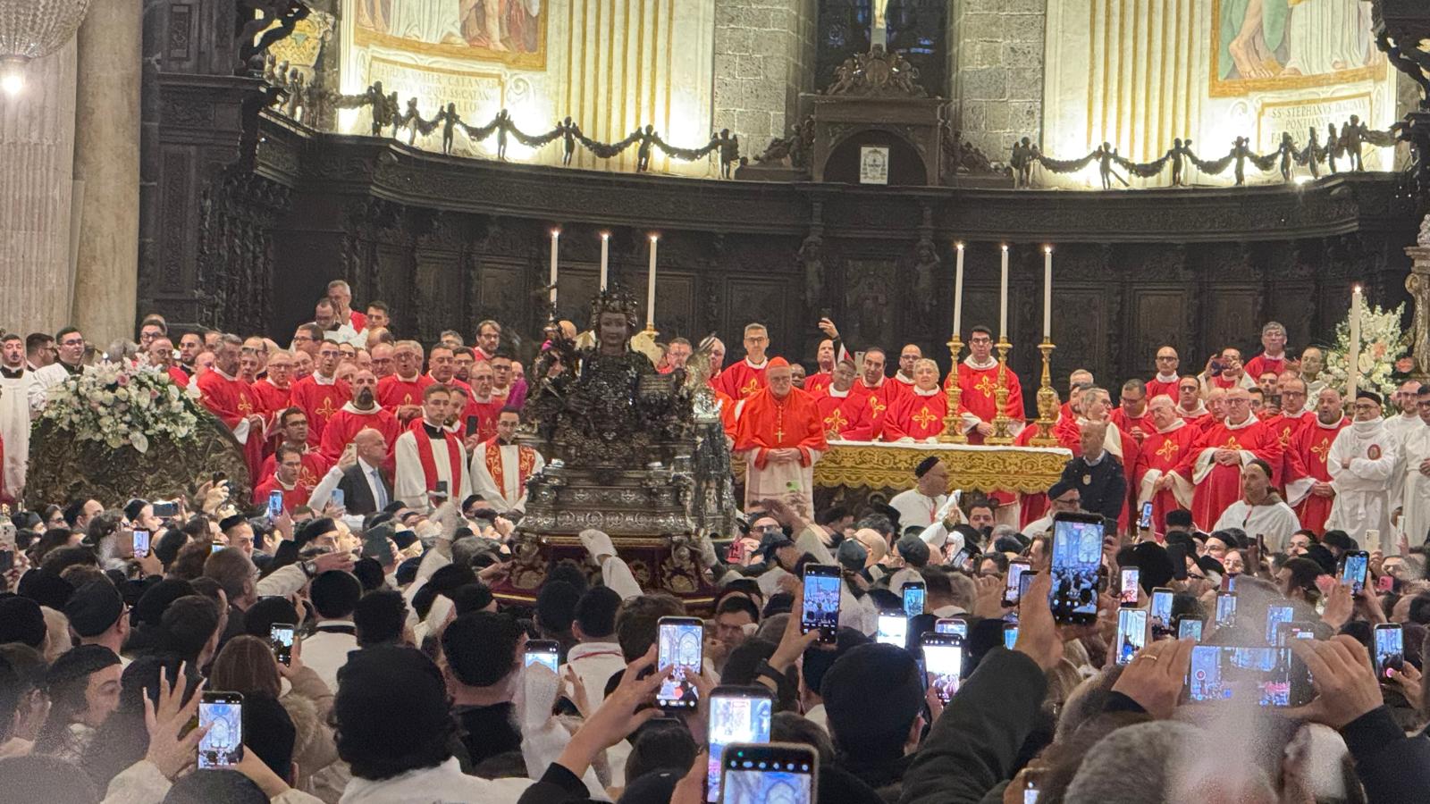 Bereits um 5 Uhr morgens begann die Feier der heiligen Messe mit der Erhebung der Reliquien der hl. Agatha. „Mann an Mann“ standen 4.000 Gläubige in der Kathedrale, weitere 5.000 verfolgten die Feier auf dem Domplatz – an Umfallen war nicht zu denken. Als die Büste und der Schrein der heiligen Agatha durch die Menschenmassen getragen wurden, winkten tausende weiße Tücher zum Zeichen der Ehre. Jung bis Alt waren vielfach zu Tränen gerührt. Selbst für uns „kühle Westfalen“ ein sehr berührender und emotionaler Moment. Anschließend zog die erste große Prozession durch die Stadt – eine 26-stündige Feier, bei der tausende Gläubige den Schrein begleiteten.