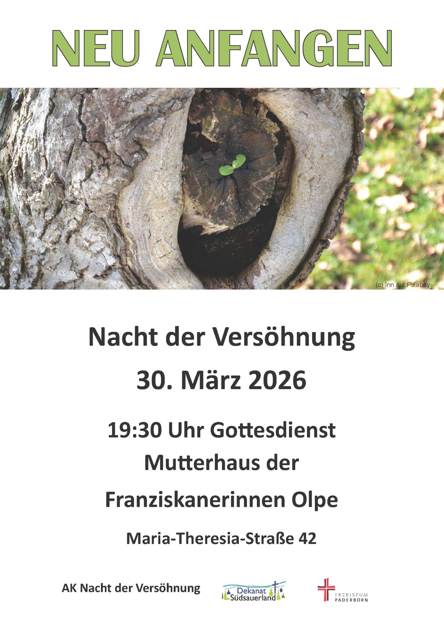 Der Bußgottesdienst findet am 30.3. um 19.30 Uhr in der Kirche des Mutterhauses der Franziskanerinnen Olpe statt. Im Anschluss besteht die Möglichkeit, einen Einzelsegen zu empfangen oder ein Beicht- oder Lebensgespräch zu führen. Bei Tee und Gebäck sind alle Teilnehmenden eingeladen miteinander ins Gespräch zu kommen und sich auszutauschen.